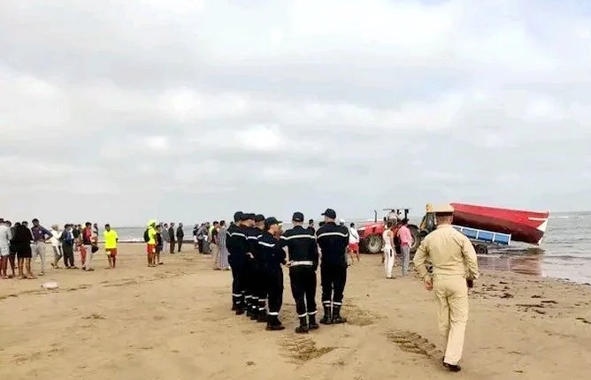 عقب انقلاب قارب بشاطئ سيدي رحال توفي 11 شخصا فيما ثم إنقاذ 21 شخصا من طرف عناصر الوقاية المدنية .