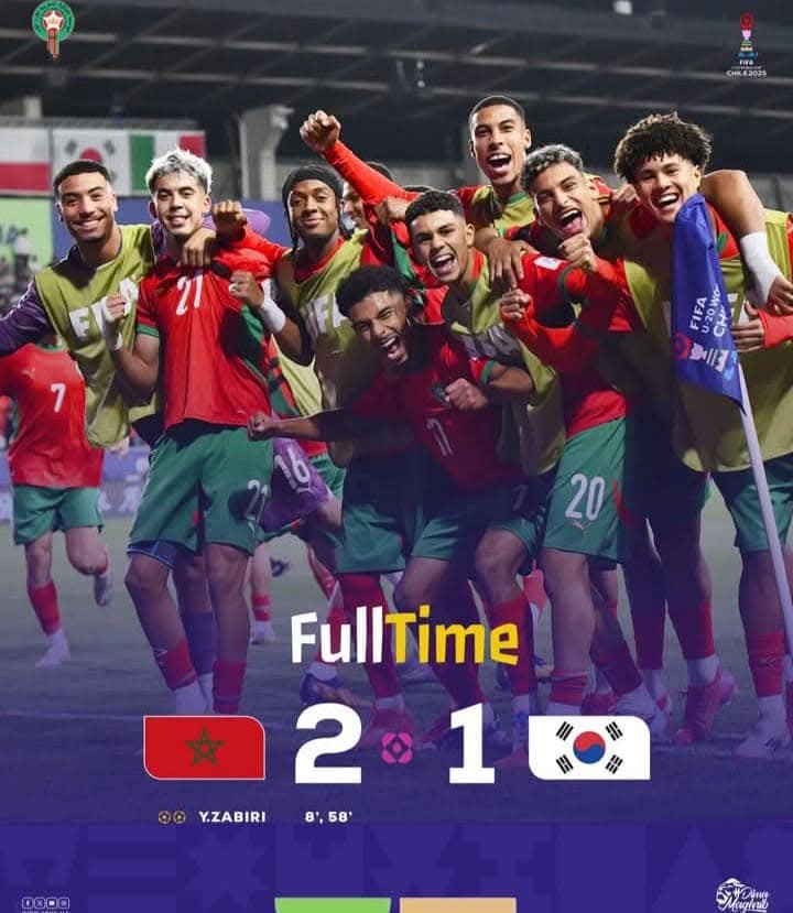 حجز المنتخب الوطني المغربي لأقل من 20 سنة، مساء اليوم الجمعة، مقعده في ربع نهائي كأس العالم للشباب، عقب تفوقه المستحق على نظيره الكوري الجنوبي بنتيجة هدفين مقابل هدف، في المباراة التي احتضنها ملعب إيل تينيينتي بمدينة رانكاغوا التشيلية، ضمن منافسات الدور ثمن النهائي.