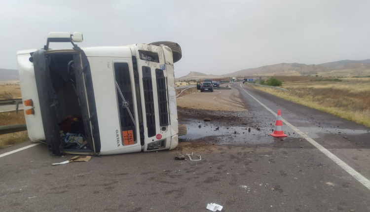 وحسب مصادير صحفية ، فإن شاحنة من النوع الكبير ذات مقطورة محملة بالبضائع انقلبت بشكل مفاجئ بعد فقدان التوازن.