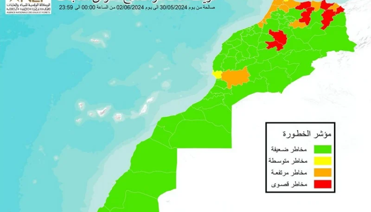 وأوضح المصدر ذاته أنه تم تحديد درجة خطورة قصوى (المستوى الأحمر) في أقاليم طنجة أصيلة، وفحص أنجرة، والحسيمة، والناظور، ووجدة أنكاد، وتاوريرت، وتازة، وخنيفرة وبني أملال.