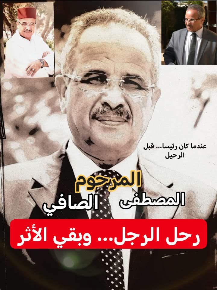 رحم الله المصطفى الصافي، الرجل الذي لم يكن مجرد رئيس جماعة، بل كان مهندس نهضة محلية في صمت ووقار. لقد جسّد نموذجاً للرجل المحلي الذي آمن بأن خدمة الناس شرف، وأن التنمية ليست شعاراً يُرفع، بل عملاً يومياً متواصلاً.