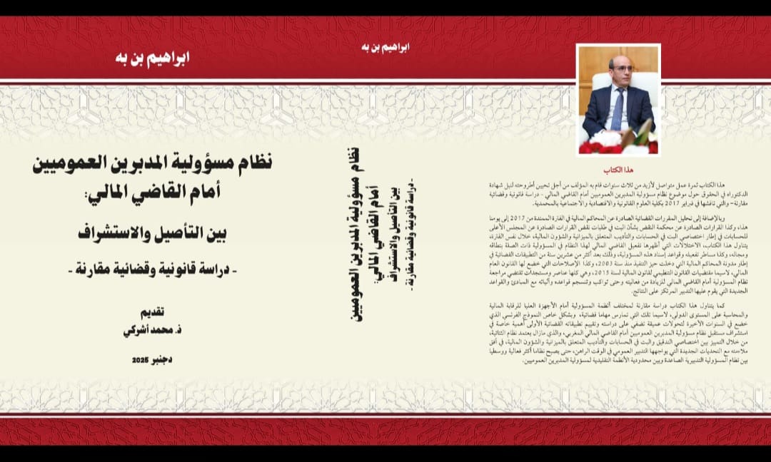 صدر حديثًا عن الأستاذ إبراهيم بن به، الوكيل العام للملك لدى المجلس الأعلى للحسابات، مؤلَّف علمي جديد بعنوان: «نظام مسؤولية المدبرين العموميين أمام القاضي المالي: بين التأصيل والاستشراف – دراسة قانونية وقضائية مقارنة»، في عمل يُعد إضافة نوعية للمكتبة القانونية المغربية في مجال القضاء المالي والحكامة العمومية.